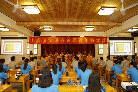 2015年7月20日上午,以“参访问道、学而习之”为主题的绍兴市上虞区多宝讲寺首届青年参学营正式开营。10天期间,学员们将在佛学讲师指导下系统地学习《俱舍论》、《普贤行愿品》、《逻辑学基础》等佛学经典和理论,结合实际进行深入研讨,并赴宁波天童禅寺、阿育王寺等古刹名寺参访。