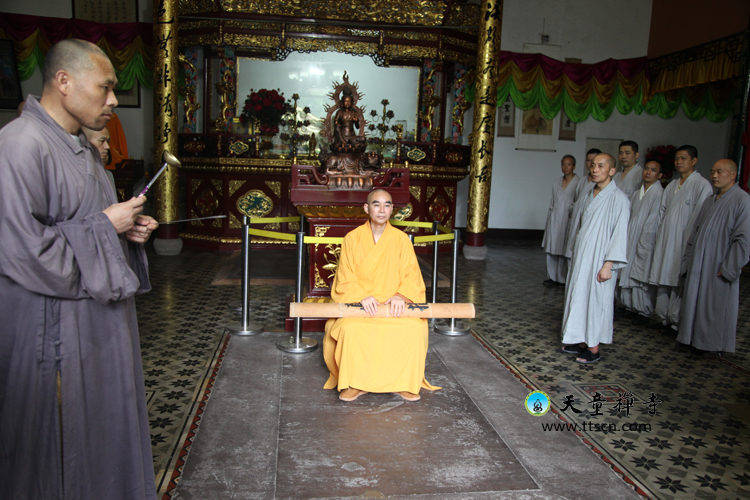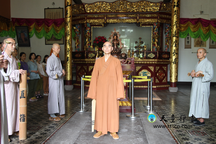 2015年7月22日,第一期“天童山传统禅七”活动圆满结束。浙江省佛教协会副会长、宁波市佛教协会会长、浙江慈云佛学院院长、本寺方丈诚信法师为“天童山传统禅七”起七、解七做了简短的开示。警策参加的僧俗二众要在现实生活中继续去精进,去参、去悟,于平常生活中,用功发心。