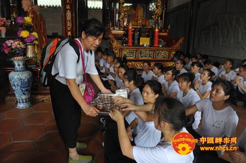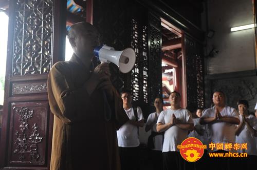 在全体营员拜至祖殿后,传源法师为营员们作了简短而又精彩的开示。法师开示说:“今天的天气如此凉爽宜人,并时有阵阵微风,都是六祖的加持,是大家与六祖的因缘。随后,他高度赞扬营员们坚持不懈的精神意志,并希望所有的营员在未来的生活里可以持续保持这种精神。”最后法师还细心的叮嘱营员们出汗后不宜喝冷水、冲冷水澡。