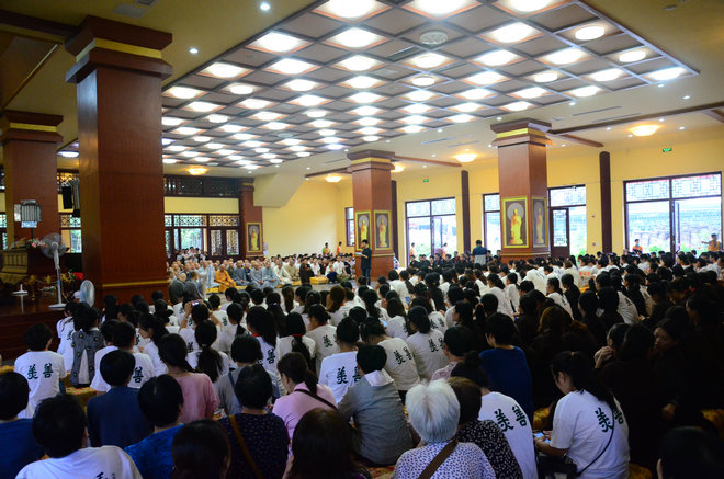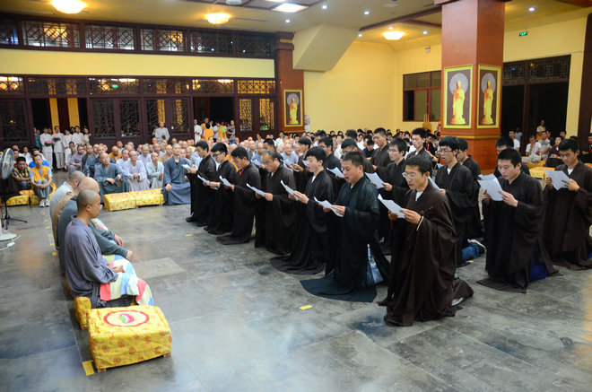 2015年7月24日晚,本次夏令营所有辅导法师、常住师父、辅导员和营员们齐聚香光讲堂,庆祝本次夏令营圆满结束。营员们准备了丰富多彩的节目,通过各种表演形式,抒发内心对东林祖庭、对各位出家师父无比的感恩。七天来,我们共同度过了生命中最难忘的时光。临别之际,大家在星光下相聚、回忆七天的点点滴滴。