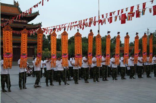 报到结束后,所有营员在导员的引导下,分队齐聚大雄宝殿,训练军仪军姿,学习入寺规约和佛门礼仪。教官和导师们无微不至、耐心细致地为营员们讲授和示范这些仪轨,从站姿训练、问讯、拜佛、礼佛到如何学会感恩、道歉和忏悔等,让营员们亲身领教了想当好一个威仪庄重的修行人,并不是一件容易的事,并对佛法增添了无上的虔诚与恭敬。