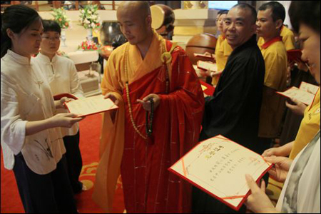 达照法师为慈善中心第一批荣誉理事颁发证书