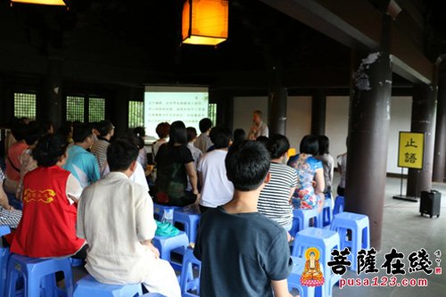 下午,延提法师讲授的武术(少儿组)、明本法师讲授的佛法人生讲座(成人组)开课。法师们生动的语言,幽默的讲述,不时的赢得营员的阵阵掌声,并与营员积极互动,答疑解问,为营员带来一次中国传统文化的洗礼,全体营员们认真聆听,欢喜愉悦。