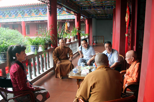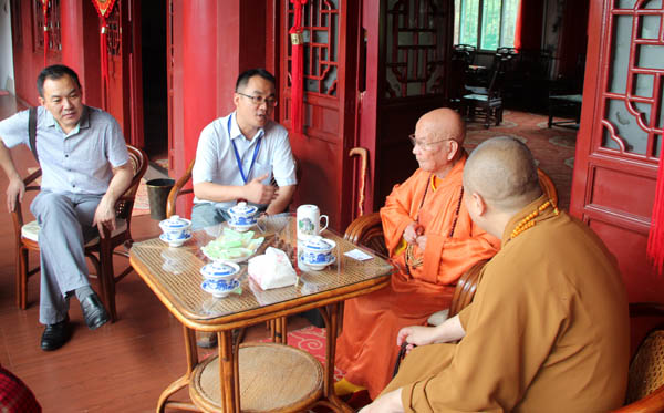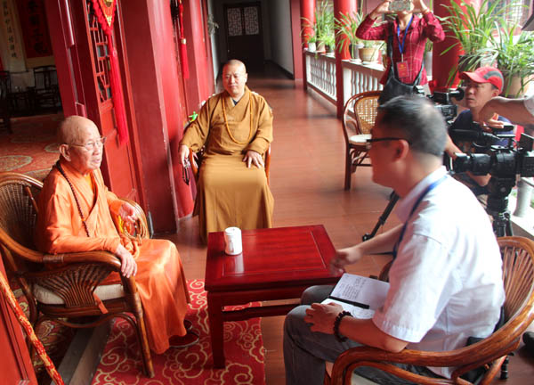 开福寺方丈圆藏法师陪同妙安长老接受采访