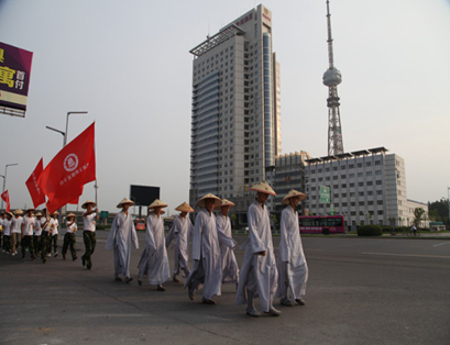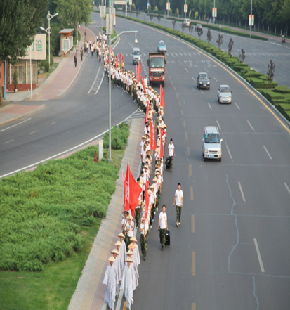 8月20日早5:00,伴随着声声佛号,300余名学子在常住师父的带领下,迎着朝阳,戴着斗笠,从南山门出发,开始了营期最后一天的行脚和坐禅活动。