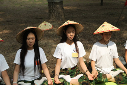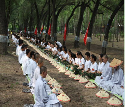 早斋过后,营员们按原路返回果城寺东侧树林,静静体验林中的禅修妙趣。大家分两排面西而坐。伴随着韵味十足的古筝曲,学员们保持着缓慢的呼吸,并观想日月的光辉照亮昏暗的心智,怡然不动,心如止水,物我两忘,了了分明。树林禅修,品自然之美,参禅韵之机,令大家耳目一新,受益匪浅。