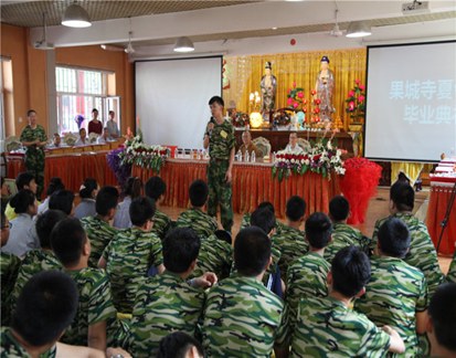 佛光普照下的果城寺,清净安宁;诸佛护佑下的学员们,吉祥安然。下午1:30,果城寺首届励志青年禅修夏令营圆满落下了惟幕。闭幕式在三圣殿隆重举行。