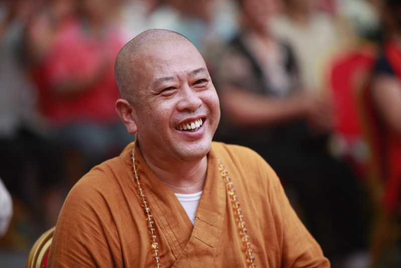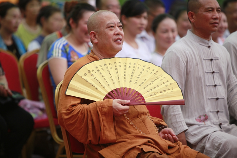 心灵讲座即将结束之时,佛协副会长一来大和尚再次上台,即兴作偈一首,以感恩传喜法师不顾酷暑,来菏泽利济群生,并表达了自己坚固不退,无悔无怨的道心。
