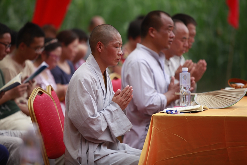 2015年8月7日下午一时,炙热的太阳微微缩进了云层,平原大地上,有阵阵清凉的风吹过,让人身心顿添凉意。传喜法师安坐于法台之上,主法心灵讲座和蒙山施食超荐法会。