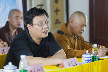 中共苏州市委统战部副部长、市民宗局局长金建立出席开学共典礼并致辞。(图片来源:灵岩山寺提供)