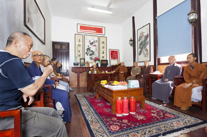 讨论开学典礼议程(图片来源:灵岩山寺提供)