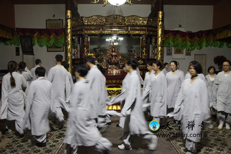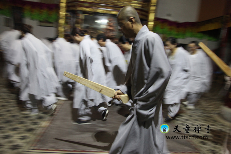 下午5点30分,诚信大和尚在玉佛殿(东禅堂)为本次传统禅七起七,并作了精要开示。在开示中诚信大和尚讲到:“大家能到天童禅寺来参加传统禅七,因缘殊胜难得。虽然禅宗一花五叶,五山十刹在中国很有影响力,但是真正禅宗的修行方法,并不为多少人知晓。大家今天能有暇满人身,又藉众位师父护持打七,殊胜因缘实应珍惜。大家务必在这七天放下一切,认真参究,利根者自然可以打破漆桶,彻见本来;根器稍钝,亦可以速消业障,烦恼减轻。参!”