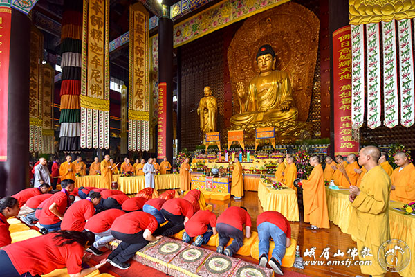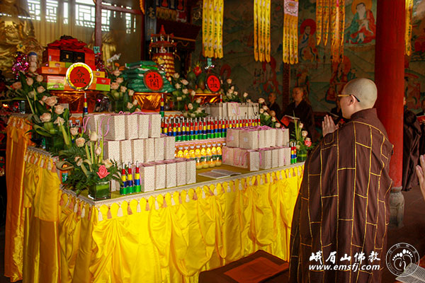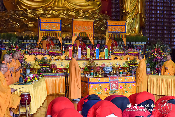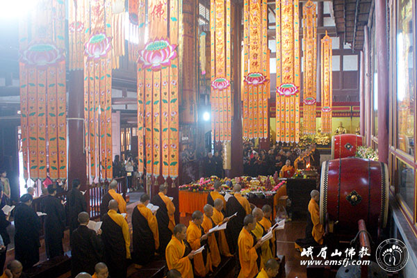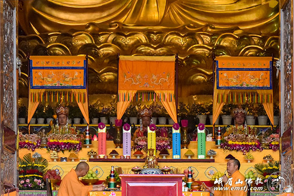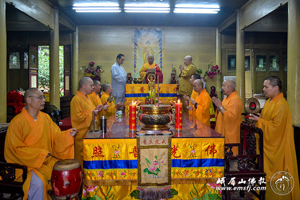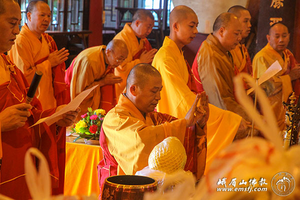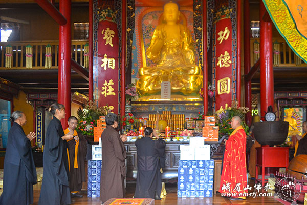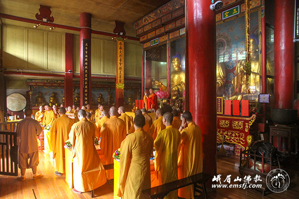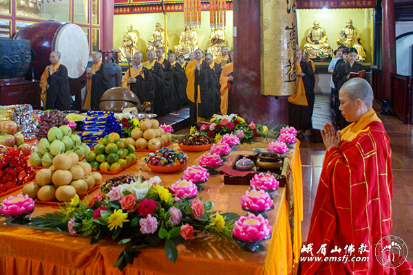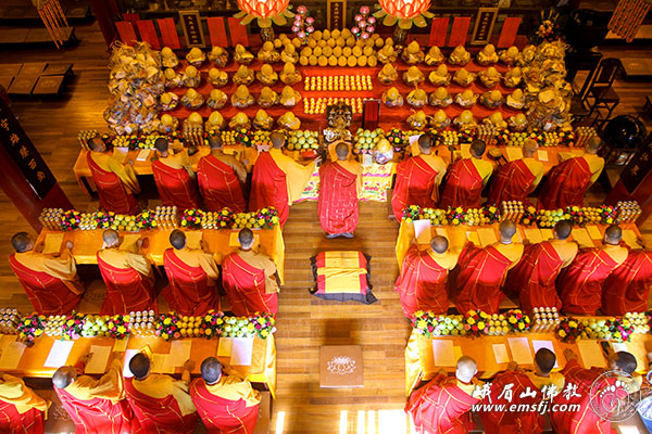 2015年8月28日,农历七月十五,时逢佛教重大节日之一“盂兰盆节”,又称佛欢喜日,峨眉山全山寺院依照佛教仪规如法如律举行了隆重的上盂兰盆供、放功德焰口、供斋、诵经、放生等法事活动,供佛斋僧,超荐众生累世宗亲,以此功德回向十方法界一切有情,虔诚祈请诸佛菩萨加被,拯济群生,拔苦与乐。
