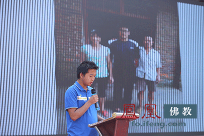 受助学生代表覃业升在捐助仪式上发言(图片来源:凤凰佛教 摄影:林恩)