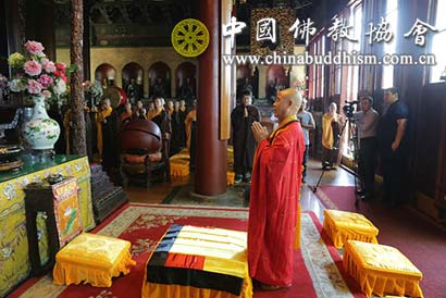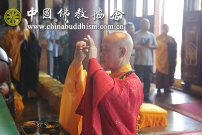 中国佛教协会驻会副会长、北京广济寺住持演觉法师拈香主法(图片来源:中佛协官网)