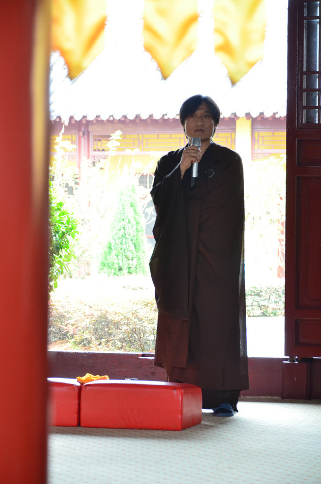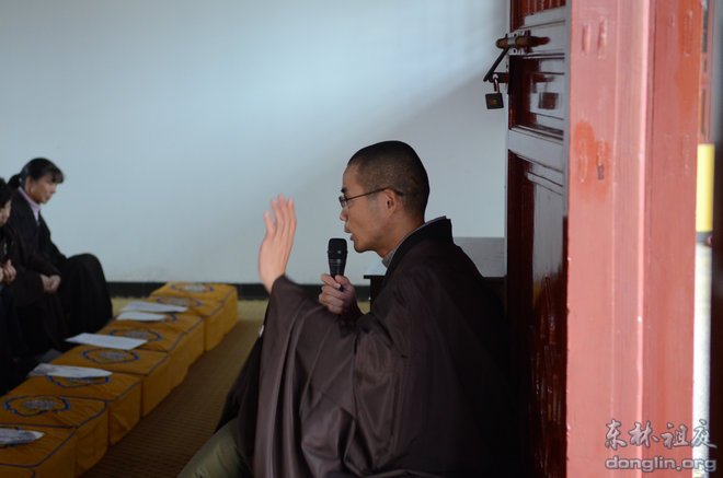最后,德天法师为大家做了总结性的开示。德天法师首先肯定了大家的闭关收获,并再次为大家讲解了净土法门的纲宗:真为生死、发菩提心、以深信愿、持佛名号。德天法师特别指出,净土法门的菩提心与通途法门不同,它并非高不难攀,而是非常平实。只要我们能发起厌离娑婆,欣求极乐的心,并回向一切众生同生极乐,就是大乘菩提心。德天法师强调在持名中要仰靠弥陀大愿的加持,做到信、愿、行三者有机结合。最后,德天法师问大众,当前地球上什么地方离极乐世界最近?有居士回答:东林祖庭是人间净土,离极乐世界最近。德天法师慈悲开示说:离极乐世界最近的地方就在每个人当下深信切愿的心中。德天法师鼓励大家离开祖庭后,也要时刻精进念佛,深信切愿,时时不忘心中的极乐故乡!