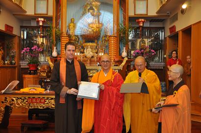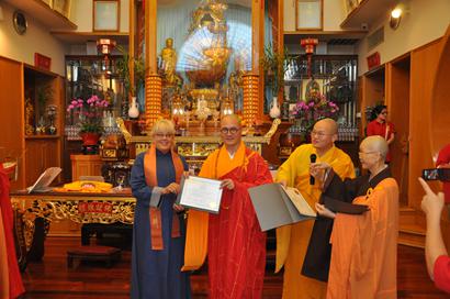 2015年8月8日,美国传教师(佛教)授戒与培训活动在美国汉传佛教国际文教中心举行。11名白人,2名美籍华人在此依规受戒受训,并从理事长本性禅师手中,接受其签署、颁发的传教师资格证书,圆满取得美国佛教传教师资格。