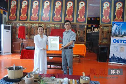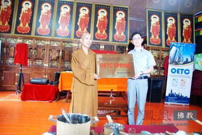 香港职业教育技术认证协会给观音禅院泉水颁发OETC SPRING牌匾。(图片来源:凤凰佛教)