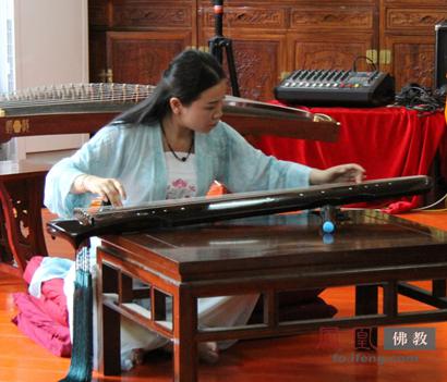 古琴艺术中心的古琴师现场演奏中国十大金曲之一《阳关三叠》,琴声优雅,意境合一。(图片来源:凤凰佛教)