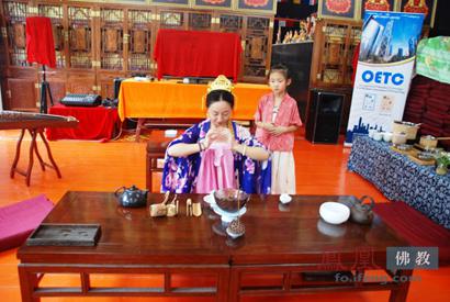 国际茶道师在终南山观音禅院表演唐代茶艺。(图片来源:凤凰佛教)