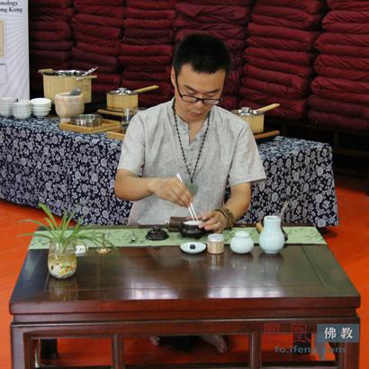 西安习礼茶业股份有限公司用观音禅院的泉水表演大唐煎茶法,古乐幽扬,茶香四溢。(图片来源:凤凰佛教)