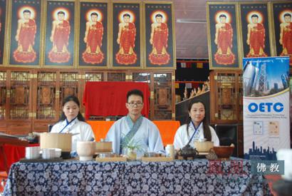 来自吉尔吉斯斯坦的外国留学生表演茶艺,感受茶道的精髓和艺术,传播中国传统文化。(图片来源:凤凰佛教)