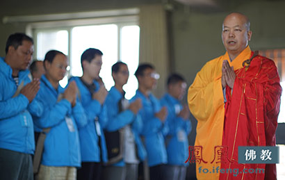 北海禅院明贤法师带领参加大学生夏令营的多个高校学子,为天津爆炸受难者祈福。(图片来源:凤凰佛教)