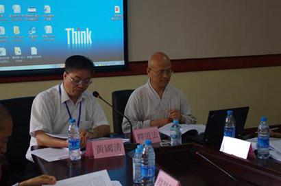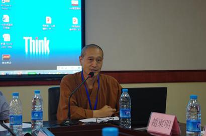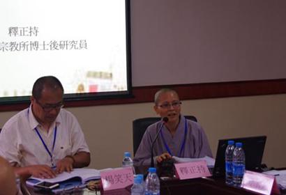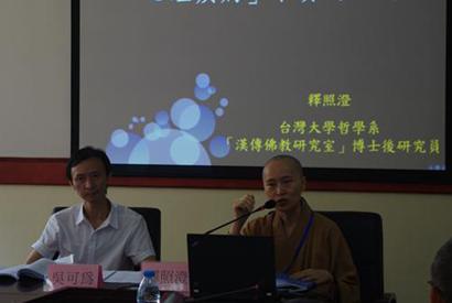 下午14:00由黄国清(台湾南华大学宗教所副教授、宗教所所长)主持,程恭让教授发表题为“《法华经》核心思想及其对‘佛教义学’之可能价值”的发言,释道法(河北柏林寺法师)发表题为“佛法传东土,义门透西天”的发言。
