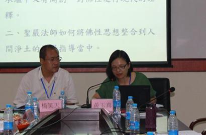 随后,由杨笑天(中国佛教协会研究室副主任)主持,赵锭华(台州学院思政部讲师)发表题为“天台止观之境、观、智与‘一念三千’不可思议境”的发言,释正持(彰化师范大学国文系博士,南华大学宗教所博士后)发表题为“从《谛闲大师语录》之净土思想探索佛教义学的现代实践开展”的发言,黄玉真(台湾南华大学宗教学研究生)发表题为“圣严法师对佛性意义的当代诠释及其与人间净土实践的关涉”的发言,张晏菁(中正大学中国文学所博士班)发表题为“吕碧城护生运动之思想开展与实践转折”的发言。