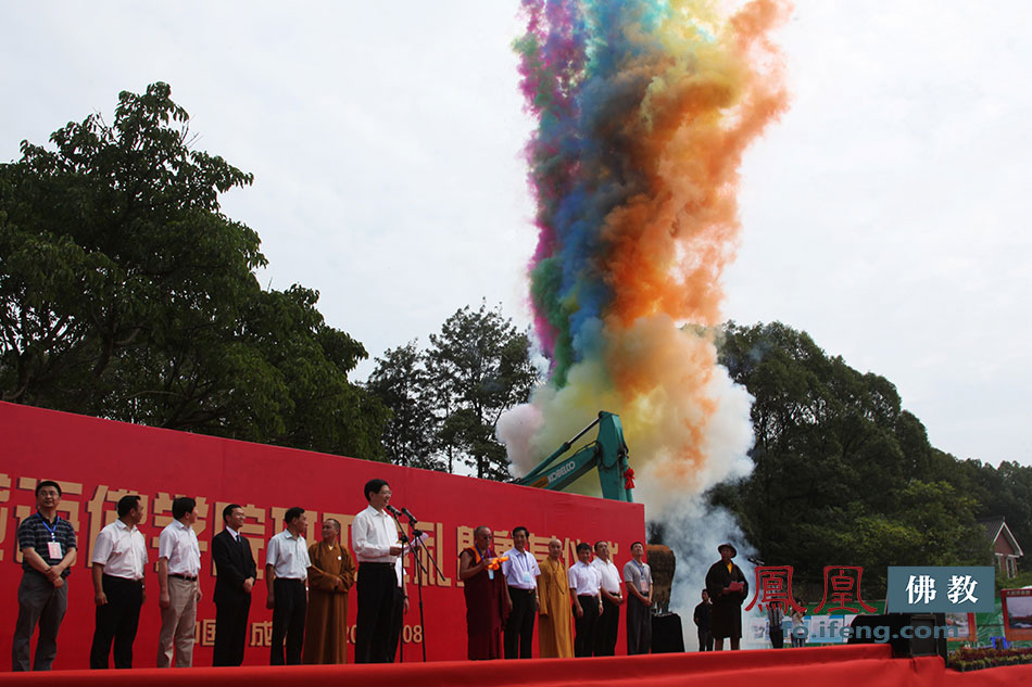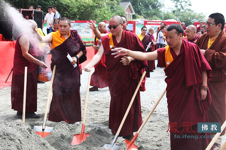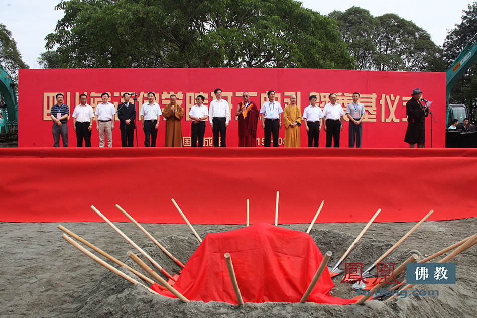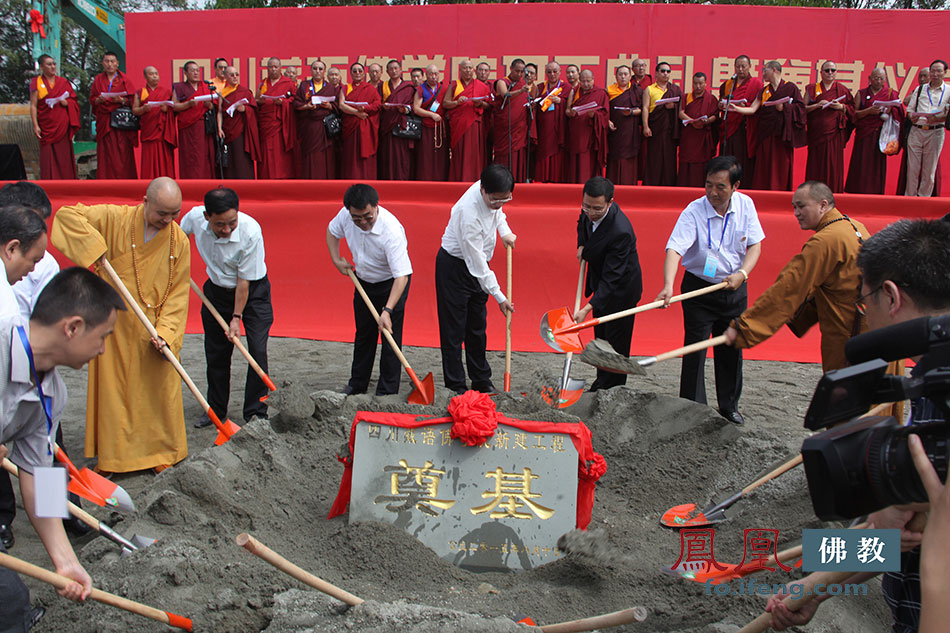 2015年8月10日,四川藏语佛学院新建工程开工典礼暨奠基仪式在四川成都市郫县唐昌镇隆重举行。四川省委常委、统战部部长崔保华,中央统战部七局巡视员、中国西藏网总裁姚茂臣,中国佛教协会副会长、四川省佛教协会会长、峨眉山方丈永寿大和尚以及各级有关部门领导、诸山大德与嘉宾出席仪式并为式程奠基,同时,诸位高僧大德还为四川藏语佛学院奠基诵经加持。(图片来源:凤凰华人佛教)