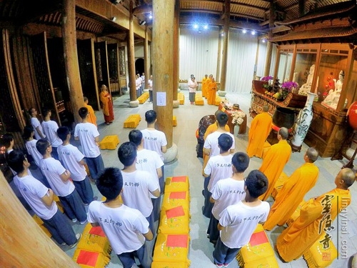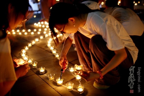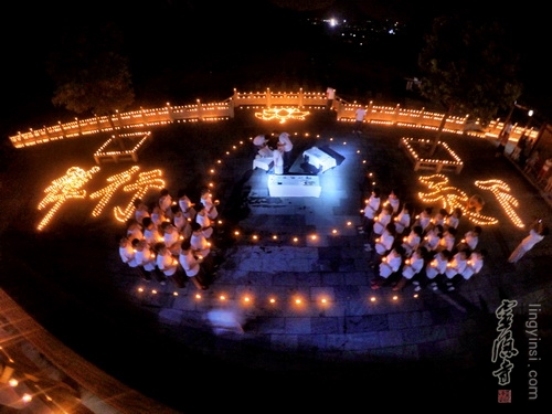 由学员们精心布置的万盏烛灯在浙江东阳天宝禅寺点亮,光光相照,灯灯相续。由灵隐寺方丈光泉大和尚法师主法,祈福拜愿,绕佛传灯。学员与法师们手托盏盏明灯,悉蒙慈光照触,共同为天下众生祈福。