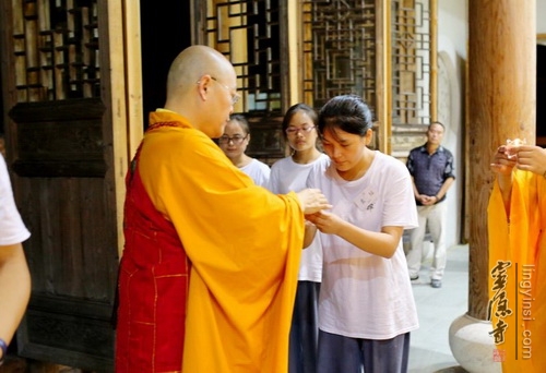 灵隐寺今年共举办了两期暑期“禅行天下修学营”活动,学员们在这修学营里体验丛林生活、亲历禅修实践、参学入寺行仪、树立正信正见,以禅修、供佛、闻法、供灯、早晚功课等丰富的宗教生活形式,领受佛法僧三宝春风化雨般的法乳熏陶。