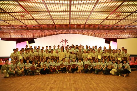 在荡涤人心清净和雅的古琴独奏之后,是梵文夏令营各小组学习心得报告环节。此次梵文夏令营共有八个小组,每个小组都准备了精彩的报告。他们有的以音声说法,表达心情与意志;他们有的通过叙述日记的形式来表达学习体悟与心境,他们有的通过舞蹈来展现自己的情感与意境;他们有的通过茶道、书法来展现学习成果与学习过程,他们有的通过演唱佛教梵呗来展现所学的知识与体悟。在各种形式的报告中,他们将七天的夏令营中所学的知识与自己的知识巧妙结合在一起,来展现自己的才艺,来表现夏令营的感受与体悟。虽然每个小组的成员来自不同的地方,从事不同的职业,拥有不同的知识,但是在梵文夏令营助教与各小组组长的精心组织下,每个小组都是以一个整体出现的,来展现本小组的风采与精神,体现了佛教和合精神,展现了中国高级知识的精神面貌。