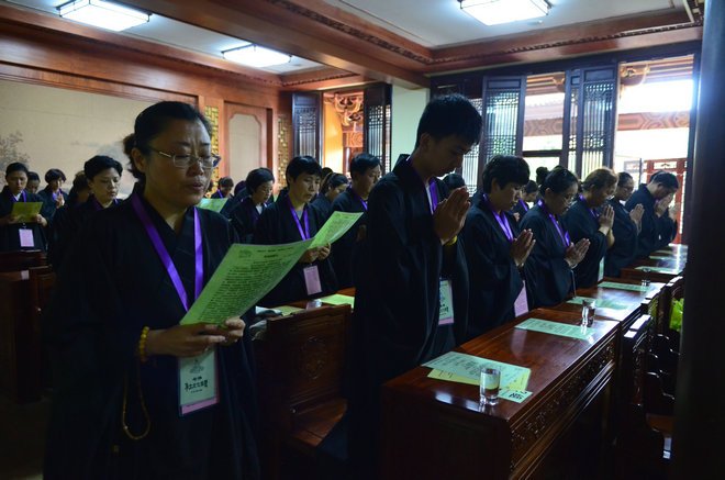 七月流火,白莲送香,2015年8月21日,来自江西等地的六十余位企业界人士相聚东林寺,参加东林寺弘法教育部培训处主办、大安大和尚任导师的第15期“东林寺净土文化体验之旅”。两天半活动期间,学员们将在法师们带领下,亲近三宝,学习佛教基础知识,理论结合实践地熏修净土法门,并参加各项法事活动,在自身生命里种下觉悟的金刚种子。