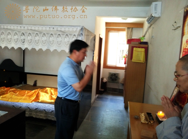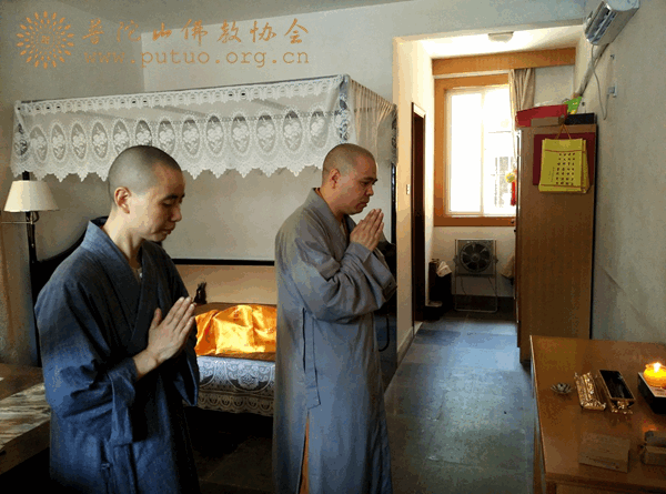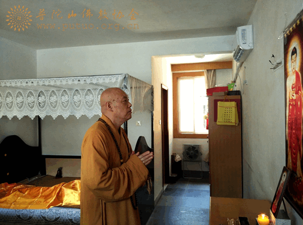 普陀山佛协副会长兼秘书长门肃法师为清了长老尼念佛送行