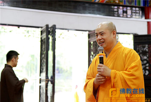 临近九点,信众陆续入座。文殊院弘法利生部总干事照证法师首先为大众做了相关开示,讲解了皈依的意义及佛门礼仪。