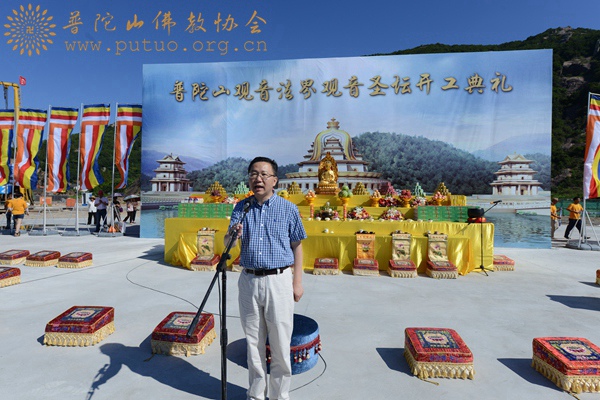 图8:忻海平部长宣布观音法界圣坛工程建设正式开工