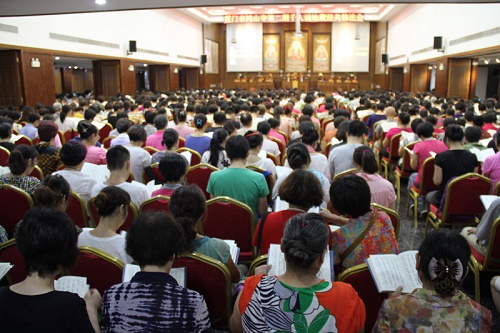 鸿山讲堂内坐无虚席约一千五百余名信众参与