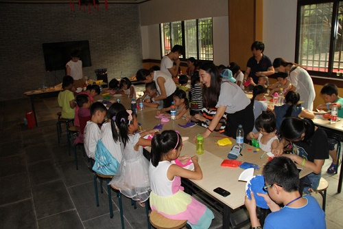 据了解,鸿山寺为方便大众专心参加法会,法会特设有儿童活动区。随同来寺的小朋友们在二楼活动区,在义工的看护下,观赏佛教动画片。第二节课,老师们教小朋友们做彩泥手工。孩子们也在这里度过了一个愉快的下午。