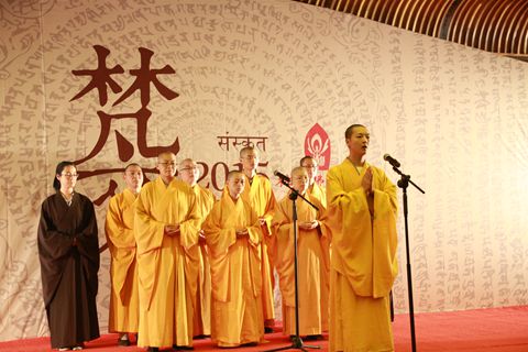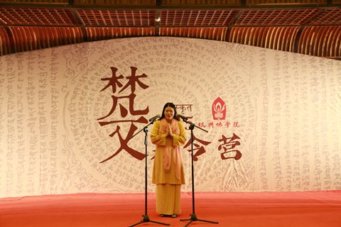 由杭州佛学院院长、灵隐寺方丈光泉大和尚发起的首届梵文夏令营在杭州佛学院开营了。来自全国各地的80多名梵文爱好者出席了开营仪式。一首由著名佛曲演唱家妙音居士演唱的《如意宝轮王陀罗尼》将梵文夏令营拉开了帷幕。杭州佛学院梵文公开课班长徐霜女士主持开营仪式。