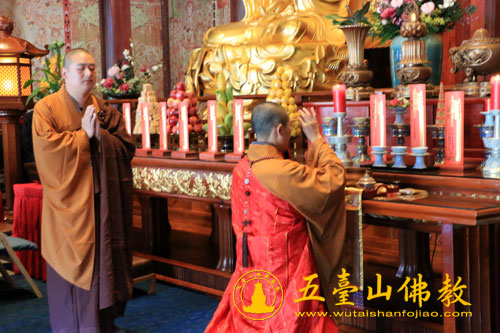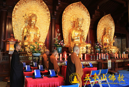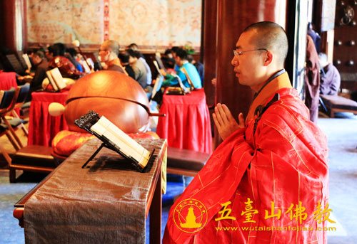“炉香乍热,法界蒙熏,诸佛海会悉遥闻”。2015年8月21日上午8时许,山西省五台山真容寺大雄宝殿内梵呗声声,殊胜的地藏七法会正式开启。真容寺监院隆明法师拈香主法,带领僧众和居士们虔诚地持诵《地藏经》。
