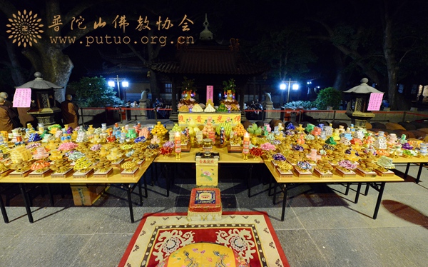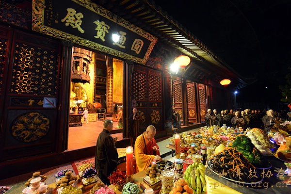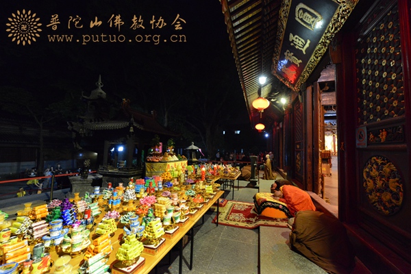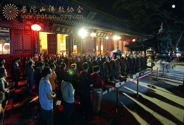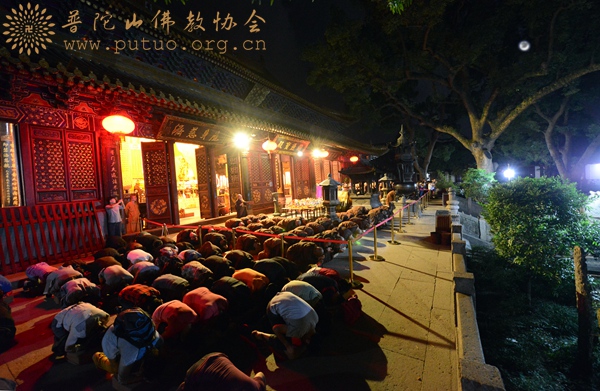2015年9月27日、农历乙未年八月十五日,恭逢月光菩萨圣诞,中国传统中秋佳节。晚上18时30分,普陀山佛教协会本部与普济禅寺常住全体僧众齐聚普济禅寺圆通宝殿前,隆重举行“礼拜月光菩萨”祈福法会。