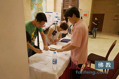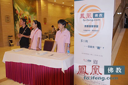 凤凰佛教工作人员在签到台前迎接大家(图片来源:凤凰佛教 摄影:于发文)