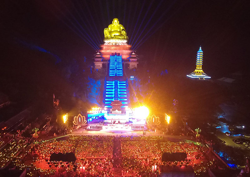 9月19日晚,2015中国(奉化)雪窦山弥勒文化节暨雪窦寺恢复开放30周年开幕盛典在浙江奉化溪口雪窦山国家风景名胜区举行。来自海峡两岸的政界、商界、文化界、演艺界、佛教界、旅游界及新闻界7000多名海内外著名人士云集奉化,参加此次活动。