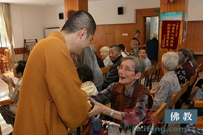 云林公益基金的法师老人们进行心的交流(图片来源:凤凰佛教 摄影:性恩行者 云林一叶)