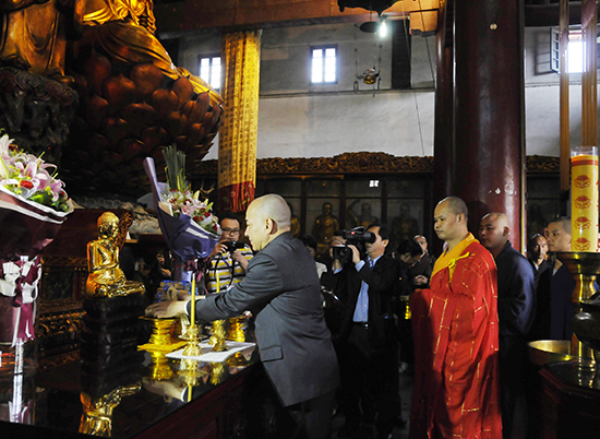 据悉,柬埔寨国王诺罗敦·西哈莫尼近日来华出席中国人民抗日战争暨世界反法西斯战争胜利70周年纪念活动,国家主席习近平于2015年8月31日在人民大会堂会见了诺罗敦·西哈莫尼国王。柬埔寨是佛教国家,并在世界反法西斯战争中发挥了积极作用;诺罗敦·西哈莫尼国王此次来华及专程参访真如禅寺,对于中柬两国人民的友谊及汉传佛教和南传佛教的友好交流有着积极的促进作用。