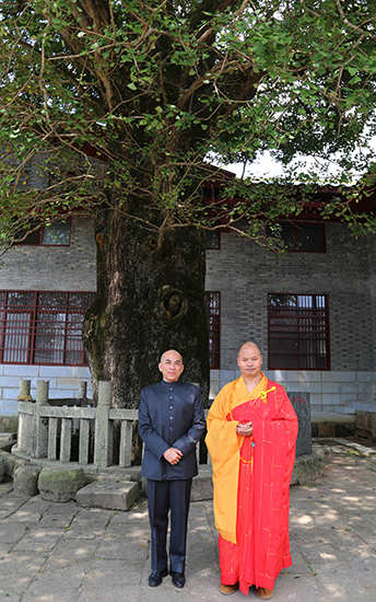 纯闻大和尚与诺罗敦·西哈莫尼国王在千年银杏树下合影