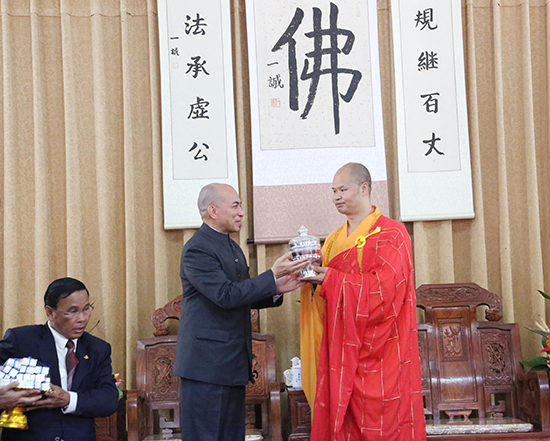 诺罗敦·西哈莫尼国王向纯闻大和尚赠送礼物