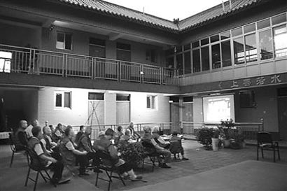 夏日的午后,宽敞的四合院里,一群老人身着白衬衣、红马甲,围坐在一起聊着天。一听有记者来,他们纷纷挤上前,表示“有很多话要说”。