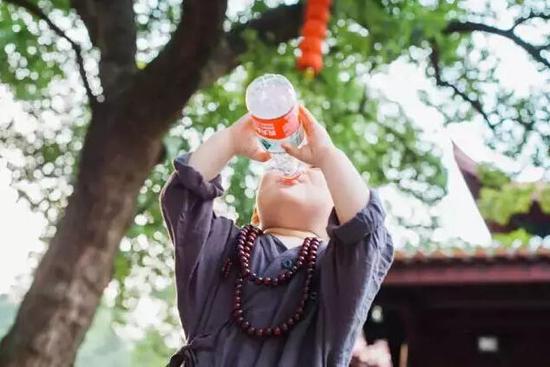 瞧瞧人家,连上个阶梯背影都萌萌哒,爱贪玩的他踉踉跄跄在寺庙各处疯跑,跑累了毫无顾忌毫无形象,豪饮一番。